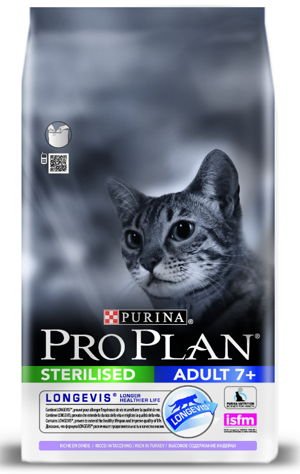 Purina® PRO PLAN® Adult Sterilized 7+ est un aliment complet pour chats adultes stérilisés qui prolonge l’espérance de vie moyenne et améliore la qualité de vie.